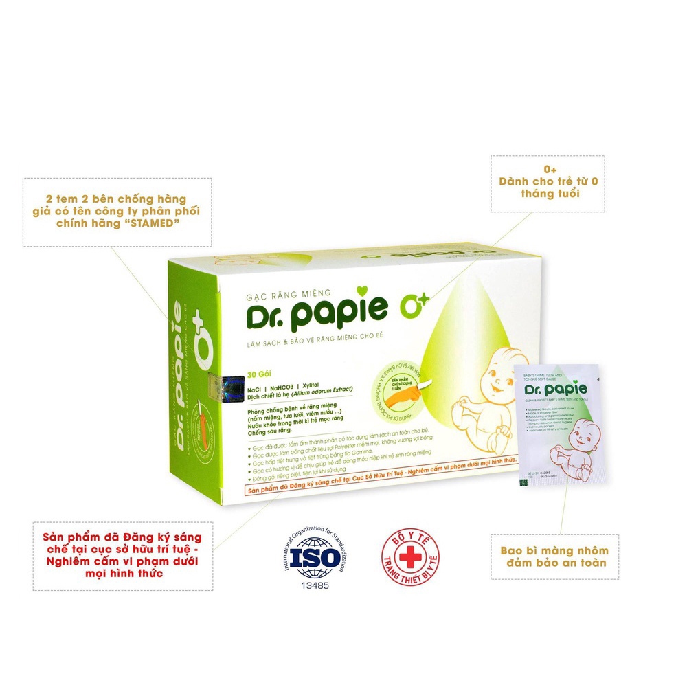 Gạc rơ lưỡi dr papie vệ sinh răng miệng cho bé từ sơ sinh và trên 1 tuổi (hộp 30 gói)