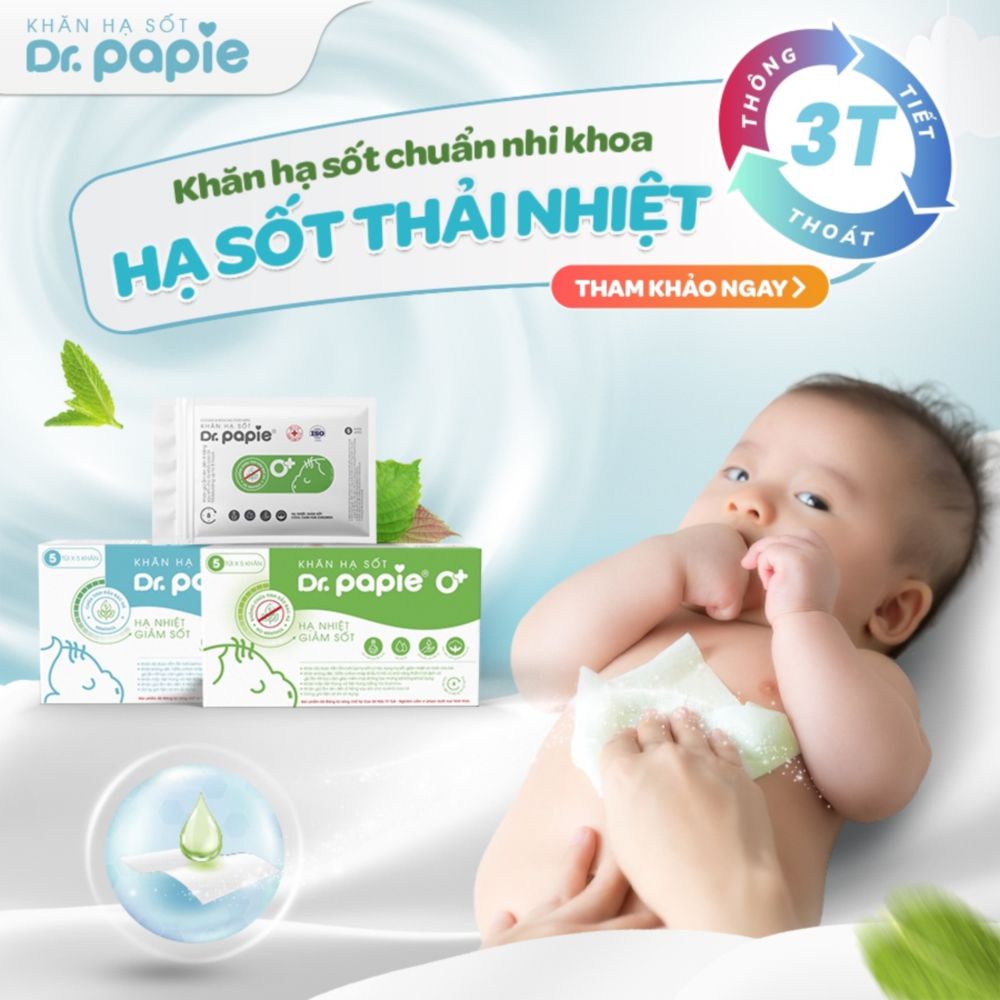 Khăn Lau Hạ Sốt Dr Papie Thải Nhiệt Chuẩn Nhi Khoa Cho Bé Hộp 5 Gói x 5 Khăn/Gói