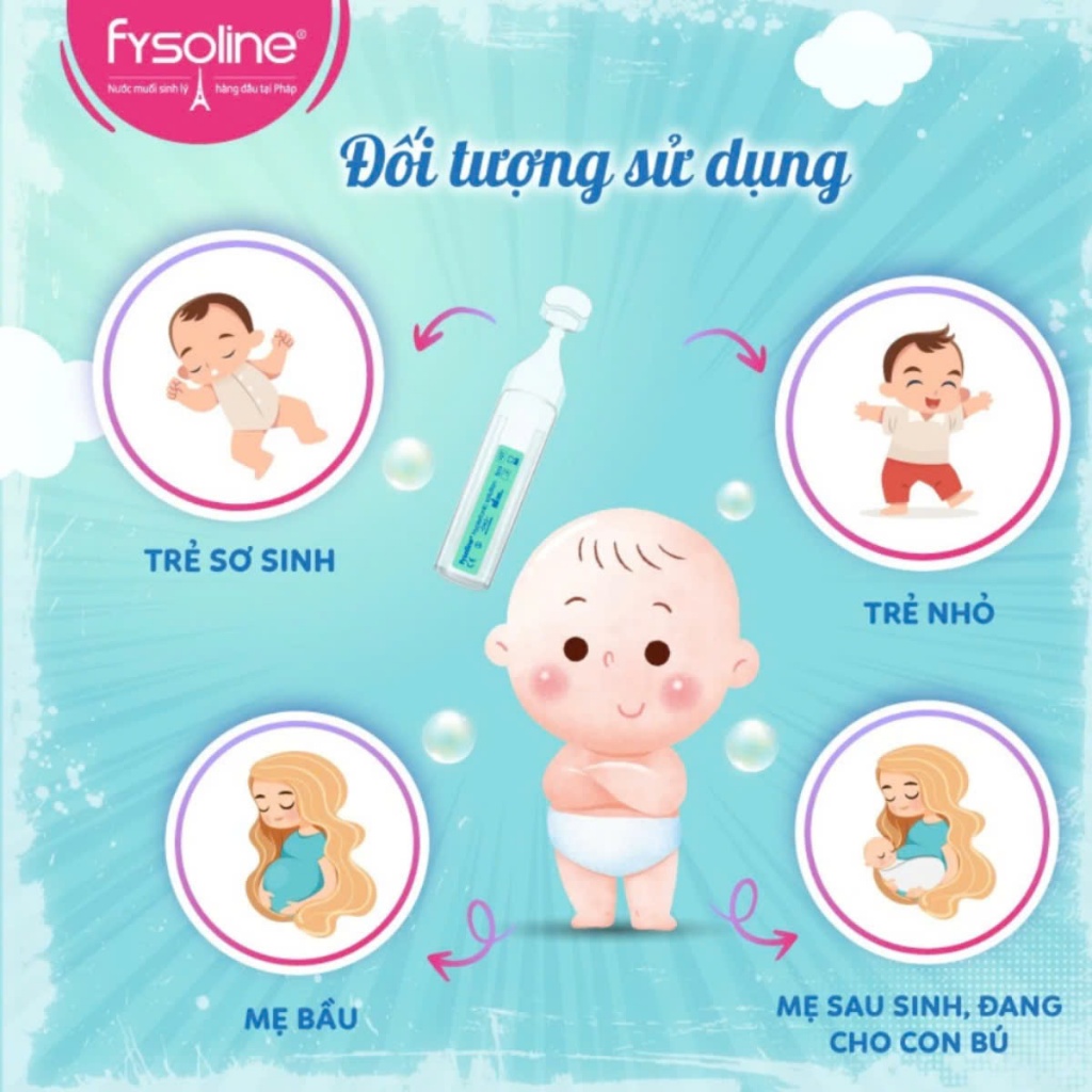 Nước muối sinh lý Fysoline được sử dụng cho trẻ sơ sinh, trẻ em và người lớn để: